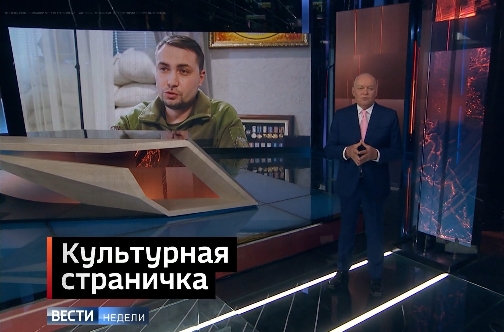 Дмитрий Киселев в «Вестях недели» произнес очередной разоблачительный монолог про украинских нацистов-убийц и их западных спонсоров. На сайте программы сюжет получил название «Палач Буданов „прошит” дикостью». В нем говорится: