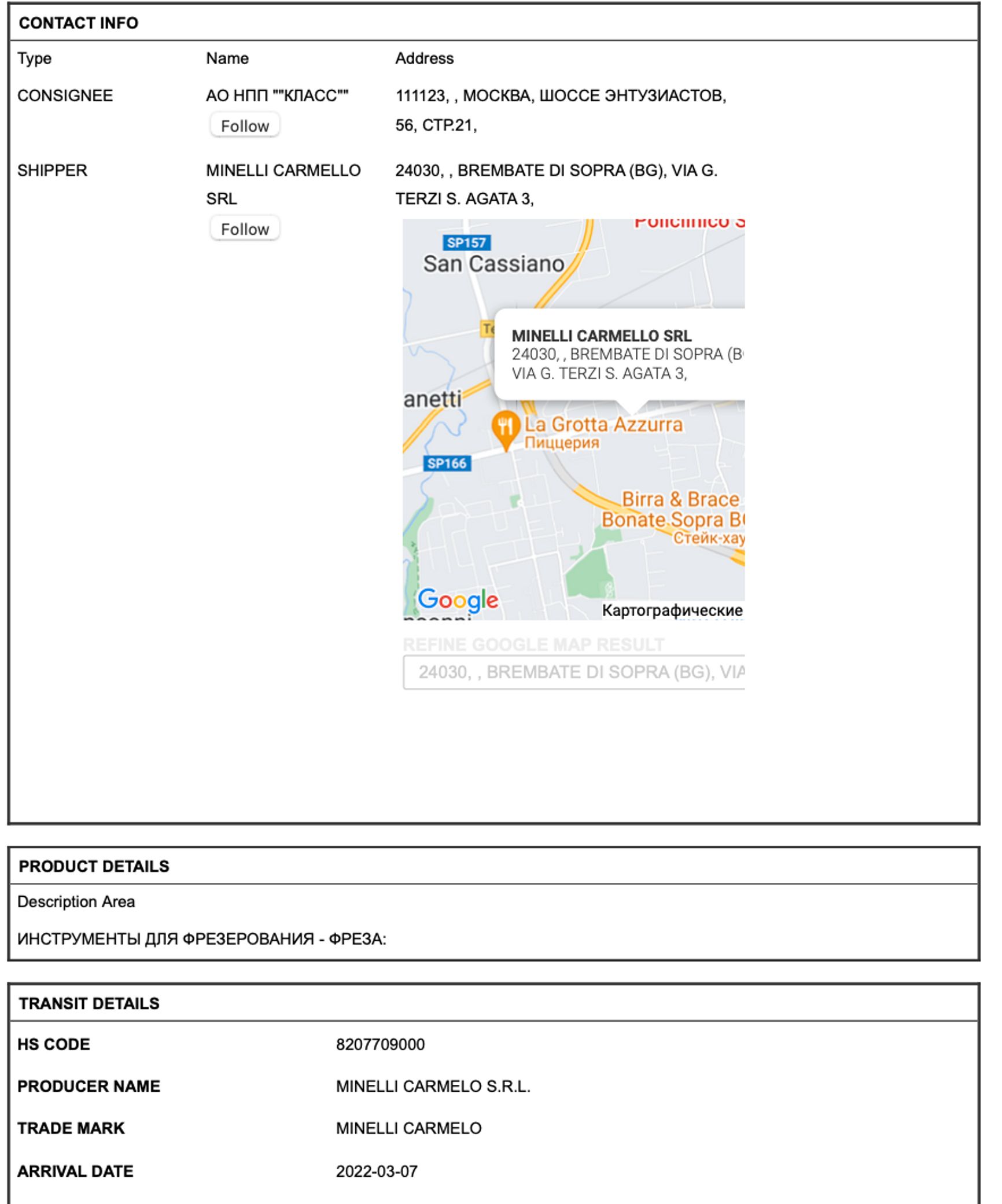 Изготовитель бронежилетов для силовиков и военных АО НПП «КЛАСС» ввез фрезу из Италии. Поставщик — Minelli Carmello.