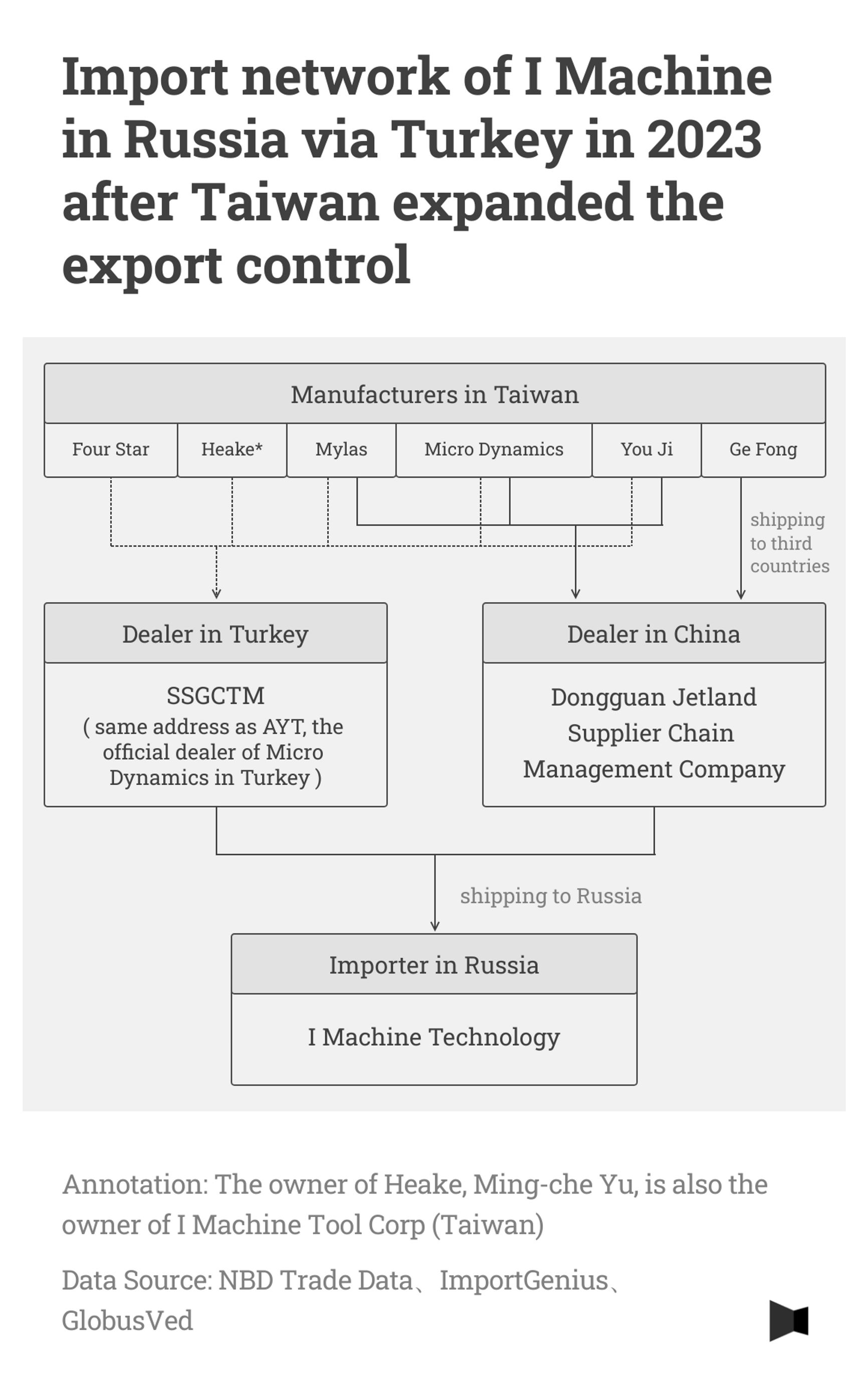 In an interview with Taiwanese media outlet The Reporter, You Ming-Che stated that after the Taiwanese government expanded its restrictions on the export of machine tools to Russia, he no longer “cooperated” with I Machine Technology (Russia). However, again according to You Ming-Che, he still maintained a friendly relationship with the Russian company. You Ming-Che also pointed out that, due to the expansion of Taiwanese sanctions in early 2023, it was inevitable that Russia would begin looking elsewhere to meet its demand for high precision machine tools. However, You Ming-Che said that he was not a party to the Russian company’s sudden pivot to Turkey and China.
