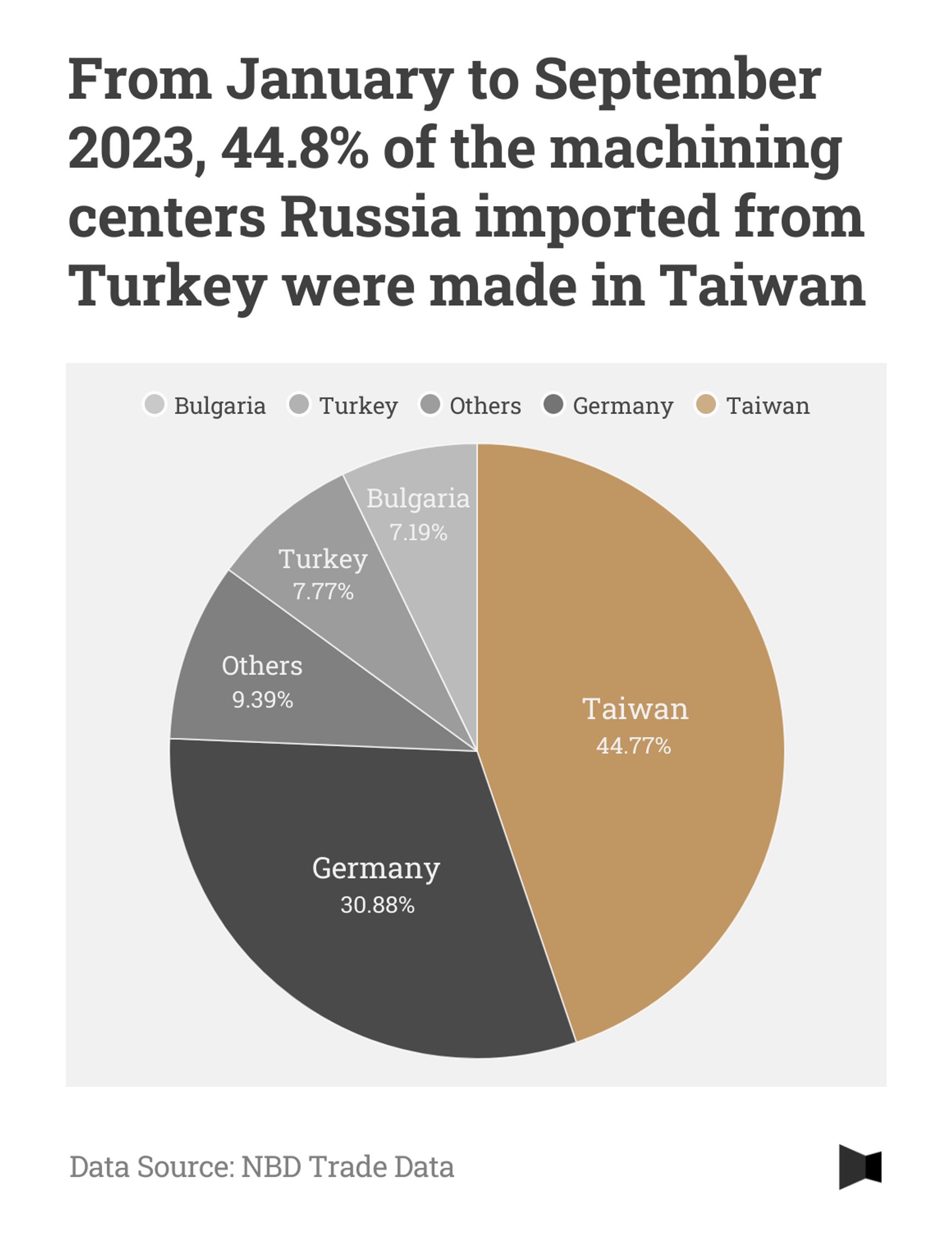 According to Russian customs records from NBD (a platform specializing in international trade data collection), between March and September 2023, Russia imported at least 193 Taiwanese-made machining centers worth a total value of nearly $29 million. Close to 80% of the Taiwanese comprehensive processing machines flowing into Russia are transshipped through third countries, with Turkey and China being the top culprits.