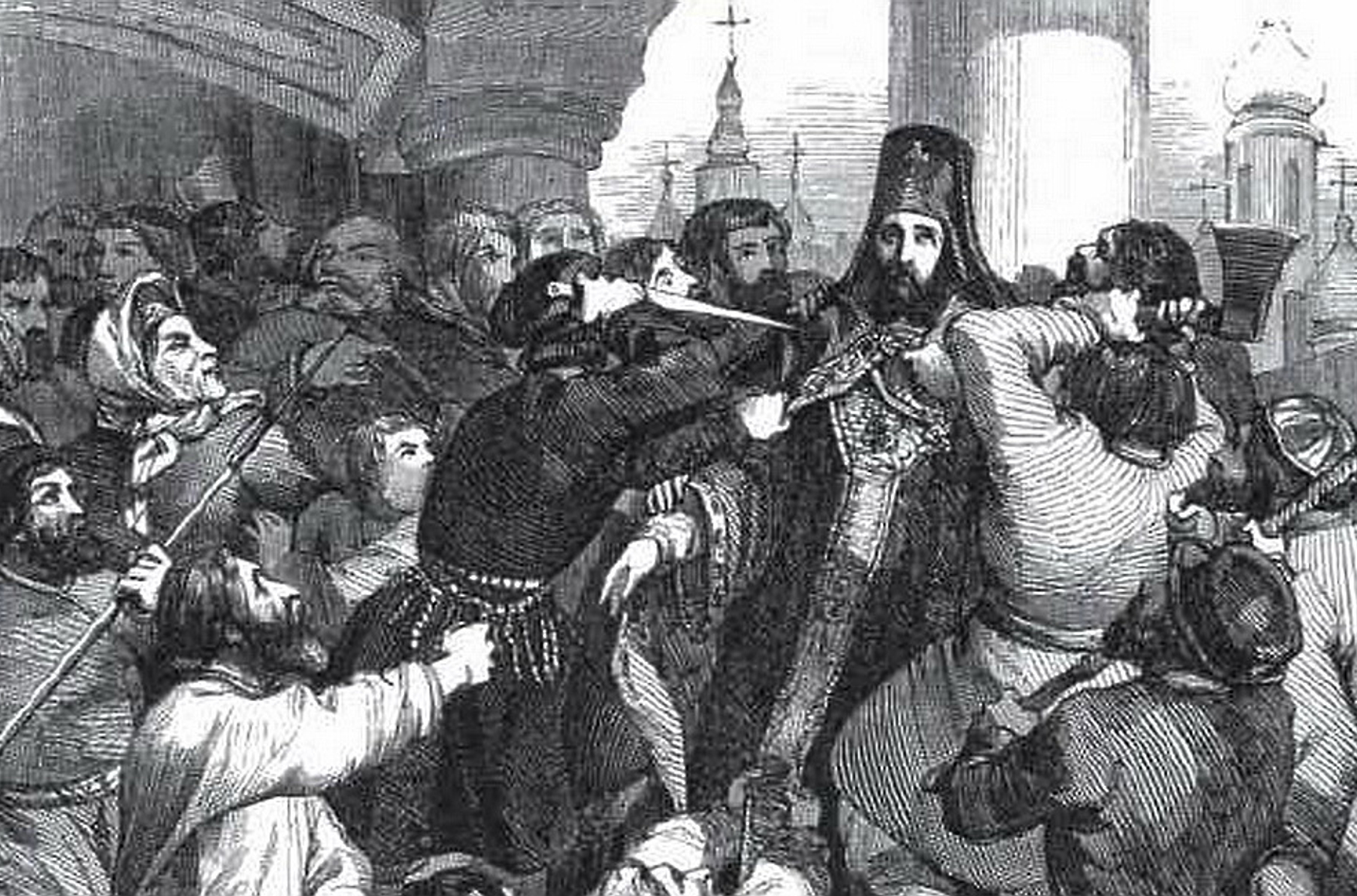 И вот что интересно: никому в толпе, собиравшейся у иконы Богородицы, насколько нам известно, не пришло в голову, что если уж кто-то мог прогневать высшие силы, то вот такие «крестцовые попы», стоявшие на перекрестке в ожидании клиентов с калачами в руках, кричавшие, если им обещали мало денег: «Не торгуйся, а то сейчас закушу» — потому что если он откусит кусок калача, то уже не сможет провести службу. Никто не думал, что пьяные и сквернословящие священники чем-то плохи — во всяком случае, никакие источники об этом не упоминают. Может быть, это просто воспринималось как нечто само собой разумеющееся. А вот строгость архиепископа Амвросия всех раздражала.