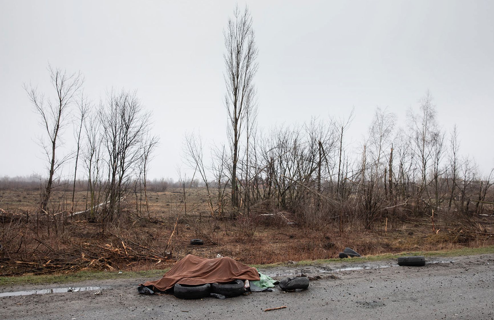 Фотограф Михаил Палинчак сообщил, что в 20 км от Киева обнаружили тела трех человек: мужчину и двух обнаженных женщин. По словам Палинчака, их хотели сжечь на обочине. По данным Минобороны Украины, найдено «4-5 трупов обнаженных женщин», которые «пытались сжечь российские варвары».