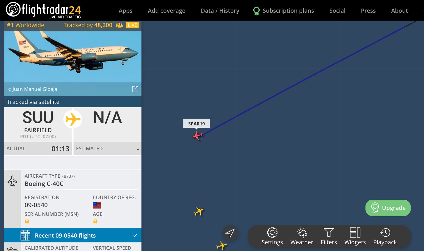 На этом фоне СМИ следят за самолетом, на борту которого, предположительно, спикер Палаты представителей Конгресса США Нэнси Пелоси вылетела с американской базы. Пелоси во главе делегации американских законодателей должна начать турне по Азии, при этом сообщалось о возможной поездке на Тайвань. В случае визита американского спикера на Тайвань Китай угрожал принять «решительные меры», писала Financial Times.