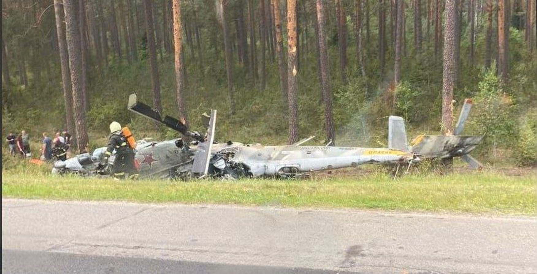 В Беларуси упал вертолет Ми-24, пострадали члены экипажа, Министерство обороны республики сообщило, что вертолет «совершил жесткую посадку». Чей именно вертолет — белорусский или российский — не сообщается. Портал Motolko.Help опубликовал фото, отметив, что вертолет рухнул около трассы М1 под Ивацевичами.