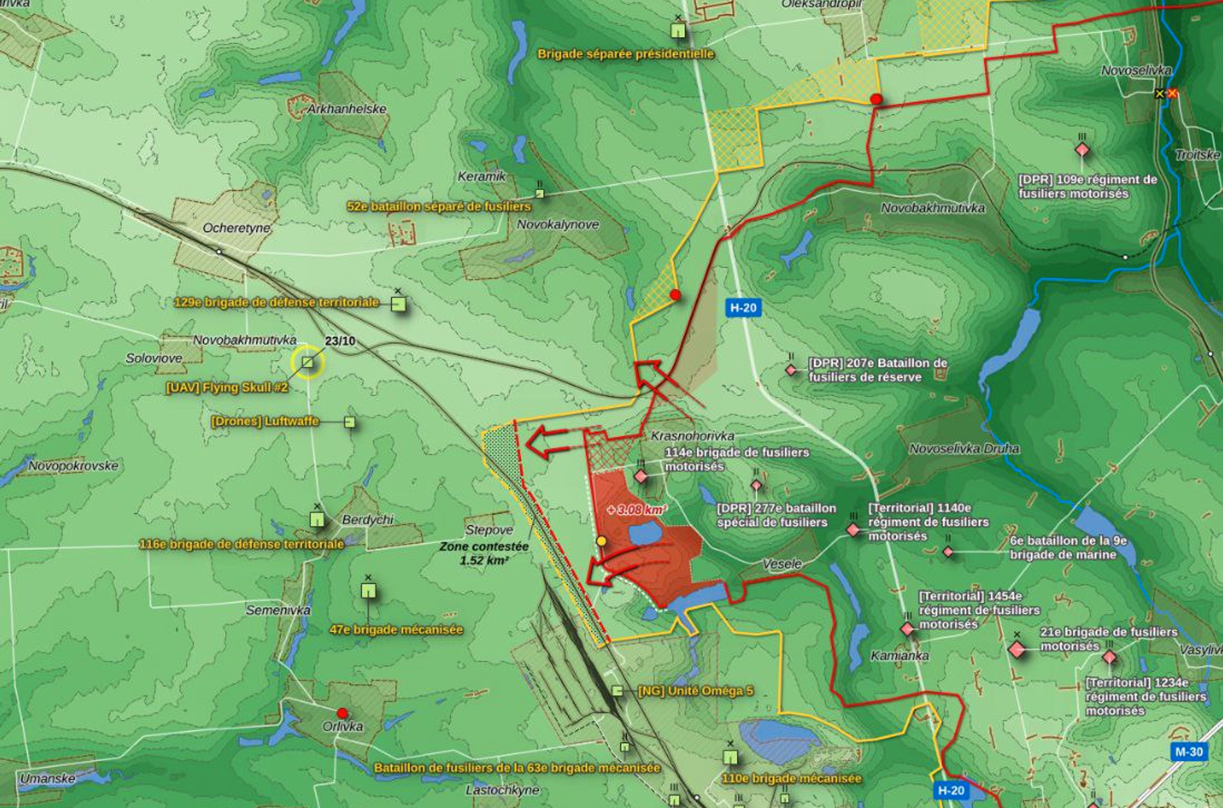 Офицер ВСУ, пишущий под ником Tatarigami_UA, анализирует ситуацию под Авдеевкой при помощи спутниковых снимков. По его данным, в период с 10 по 20 октября российские силы потеряли в этом районе 109 единиц военной техники. Подавляющее большинство потерь приходится на боевые бронированные машины, в том числе БМП-1 и БМП-2, танки Т-72, ​​Т-64 и Т-80 в различных модификациях, МТ-ЛБ и БТР.