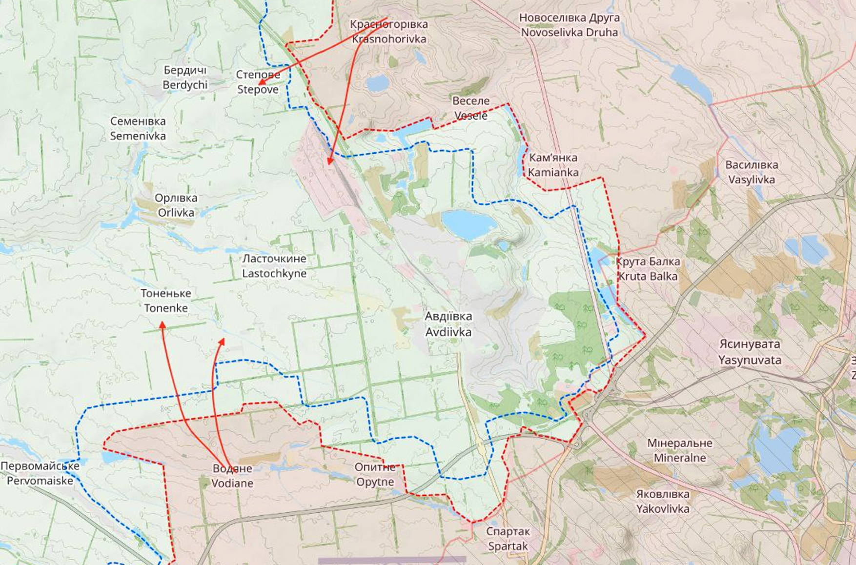 • OSINT-проект DeepState — российским войскам удалось добиться частичного успеха севернее Авдеевки;