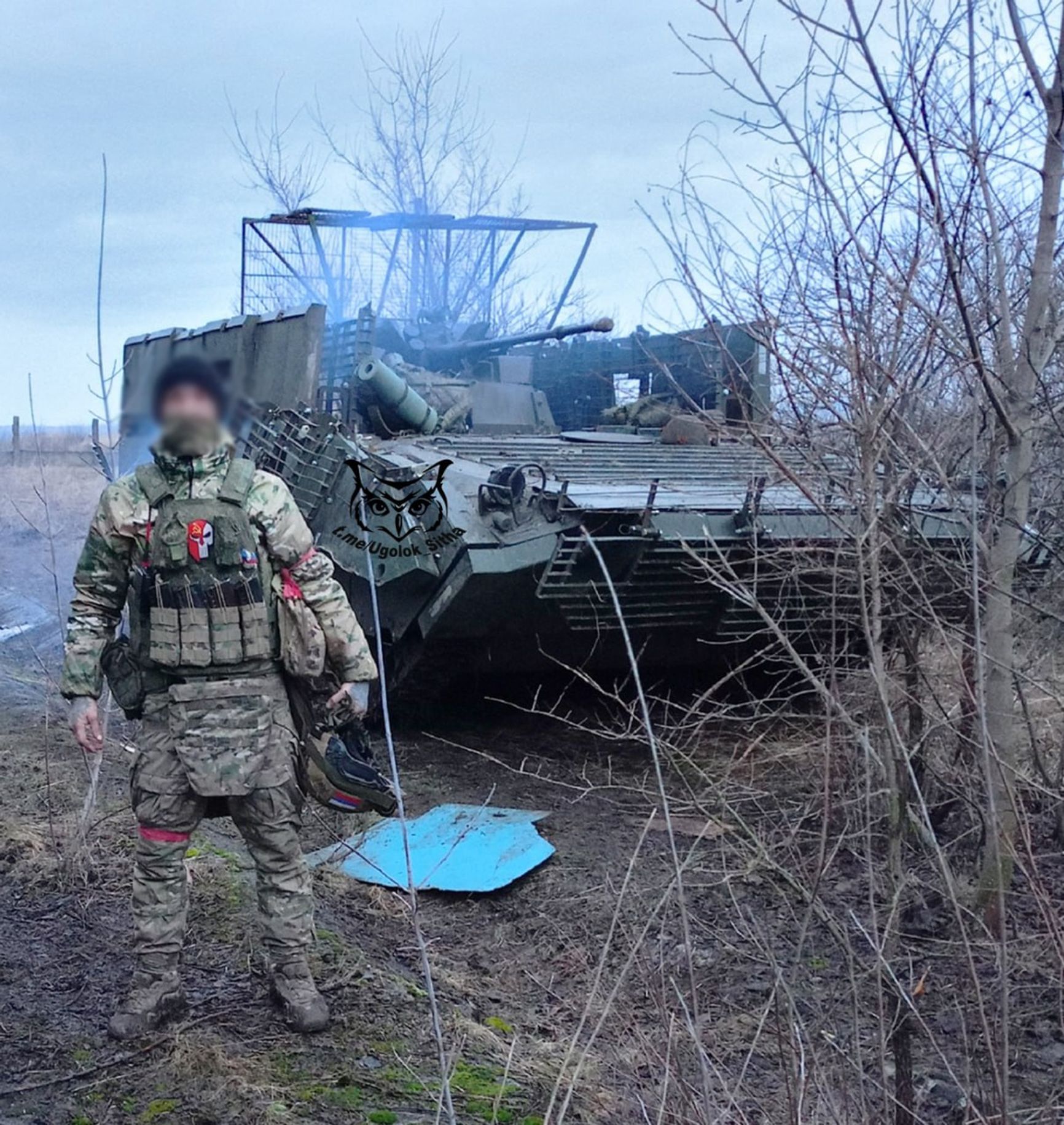 Telegram-канал «Уголок Ситха» публикует фотографии прокачанной российской БМП-1АМ «Басурманин» c дополнительным бортовым бронированием, установленным на заводе, «мангалом» и дополнительным бонусом в виде защитных экранов по бокам поверх основной защиты.