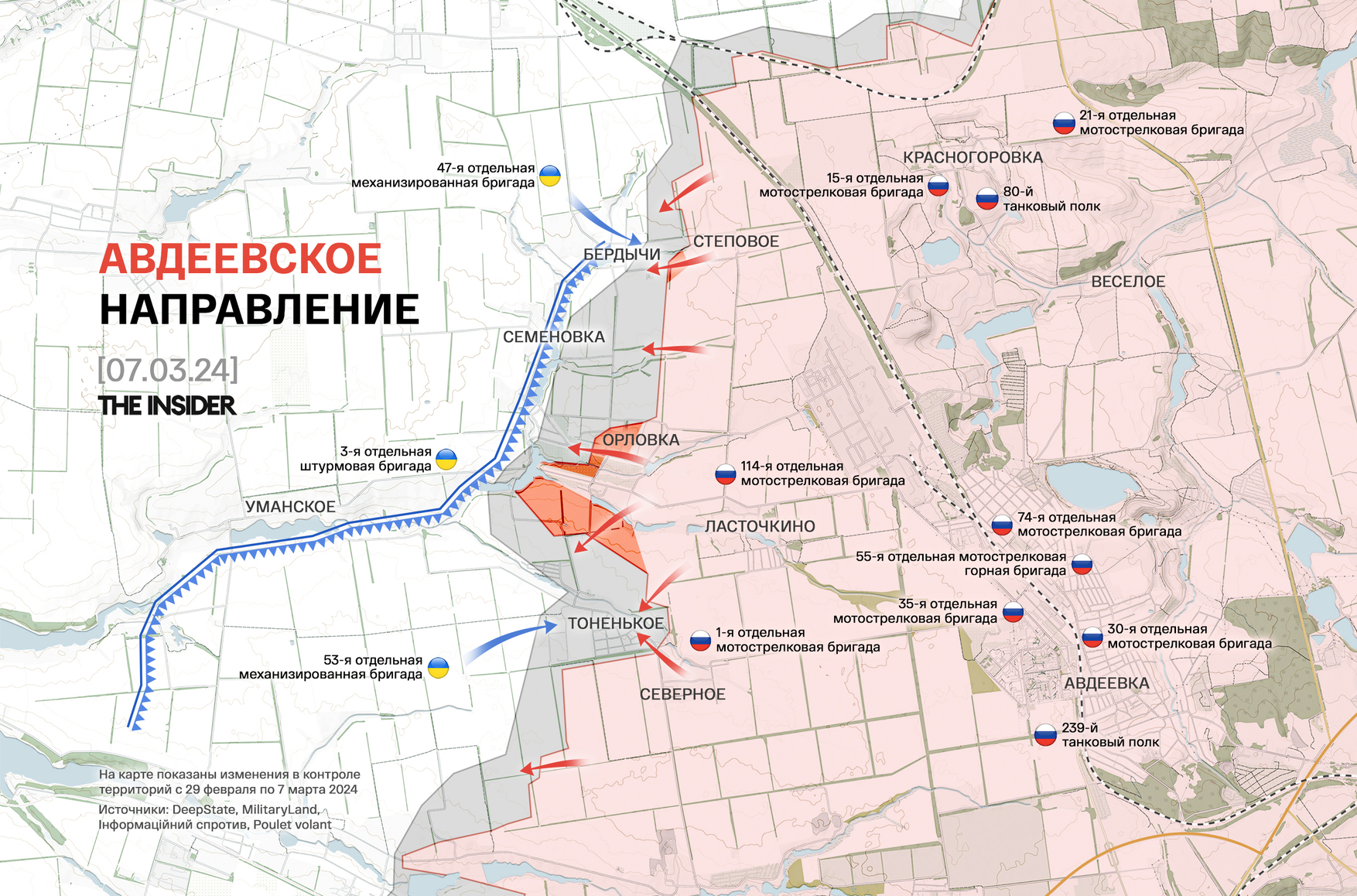Между тем, «военкор» Юрий Котенок утверждает, что Новомихайловка «наполовину освобождена», а вот село Победа, о взятии которого Минобороны России отчитывалось еще 22 февраля, на самом деле «еще не дожали». «Военкор» сетует на «большой кризис управления» и «страх принятия решений» со стороны вышестоящего командования, вредящий низовой инициативе.