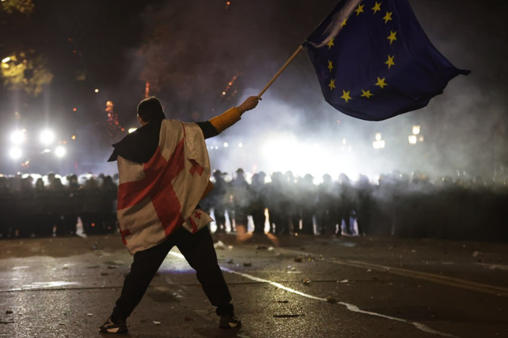 В ночь на 1 декабря в центре Тбилиси, около здания парламента, полиция и спецназ разогнали массовую акцию протеста, применив водометы и слезоточивый газ. Об этом сообщает Paper Kartuli.