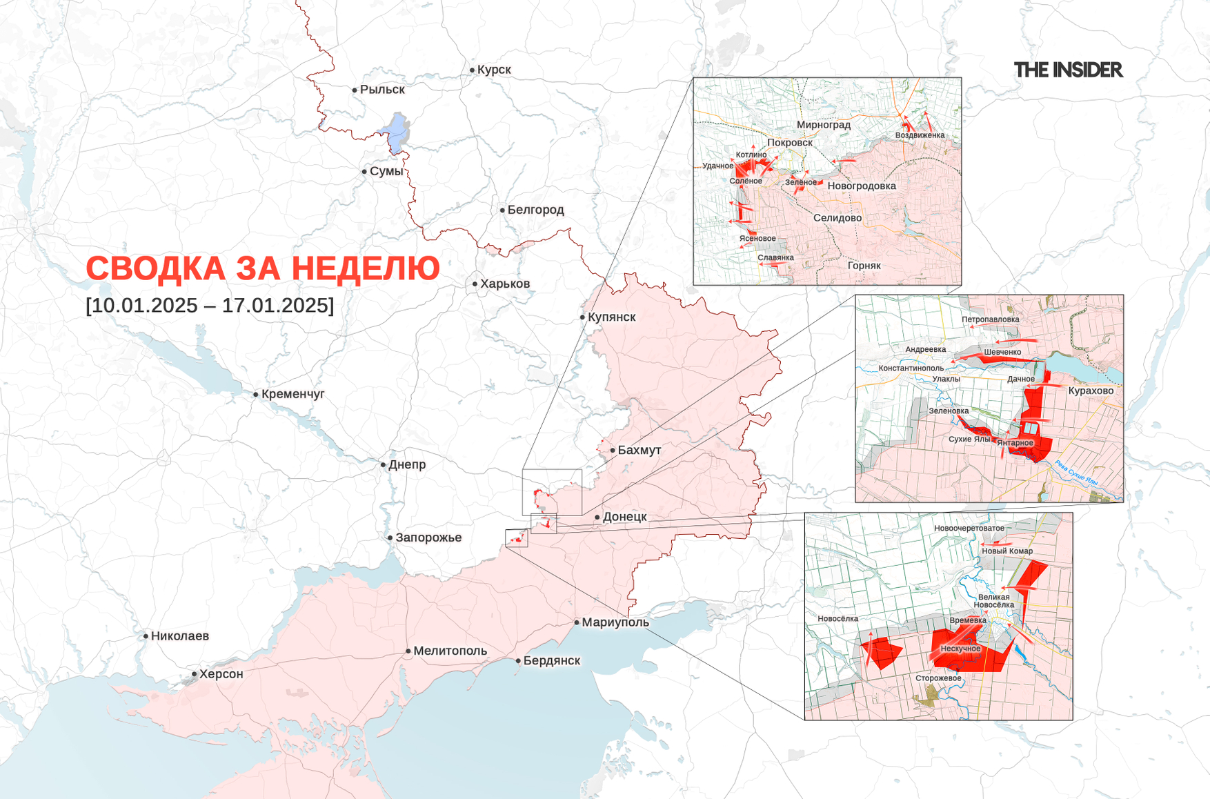 Предыдущая недельная сводка (с 4 по 10 января 2025 года): ВС РФ наступают на севере Курской области, ВСУ оставили Курахово, удары по химзаводам в России. Что происходило на фронте на этой неделе