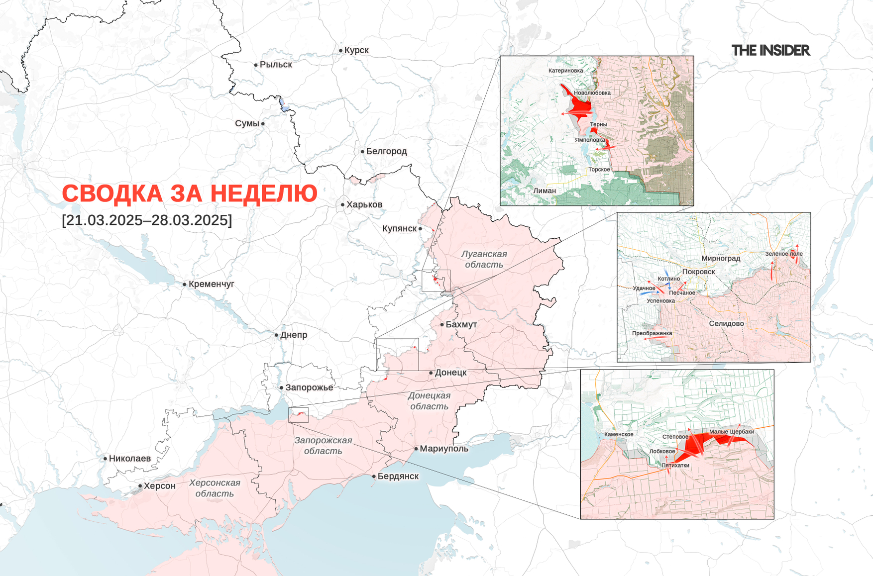 Предыдущая недельная сводка (с 15 по 21 марта 2025 года): Бои в белгородском пограничье, ВСУ отошли из Суджи, «Длинный Нептун» долетел до НПЗ в Туапсе. Что происходило на фронте на этой неделе