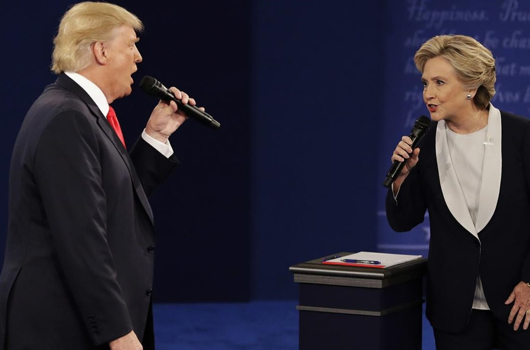 В воскресенье 9 октября Дональд Трамп и Хиллари Клинтон вновь сошлись в предвыборных дебатах. За два дня до эфира Washington Post обнародовала видеозапись десятилетней давности, где Трамп, забыв о включенном микрофоне, в вульгарной манере обсуждает женщин и говорит, в частности, что будучи «звездой», может позволить себе целовать их и хватать за «киску», не дожидаясь их согласия.